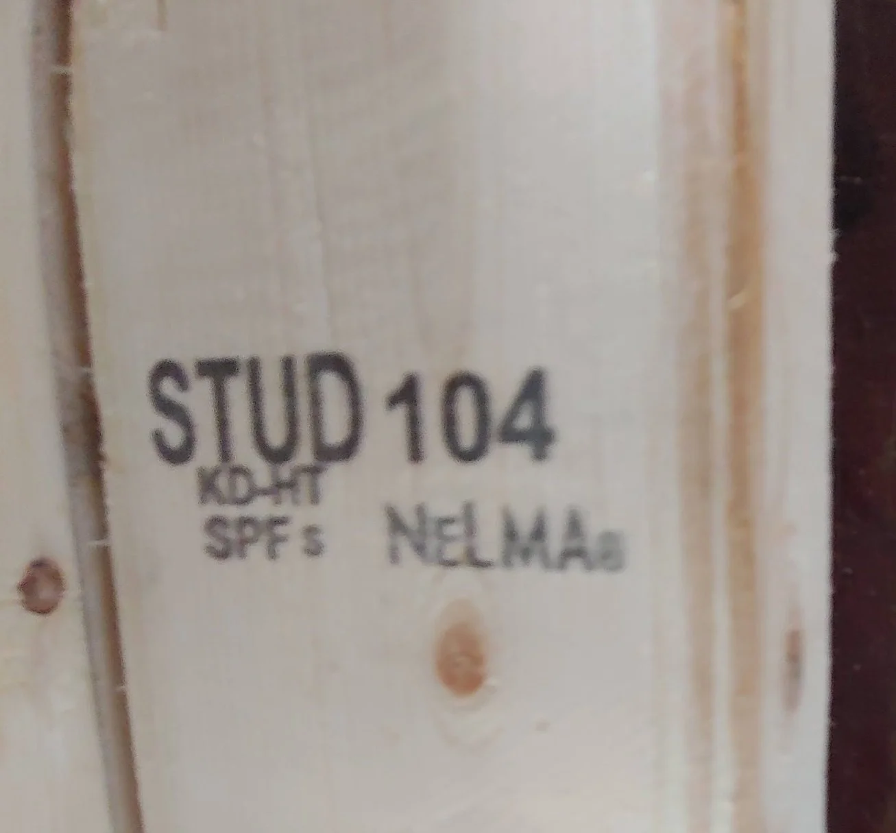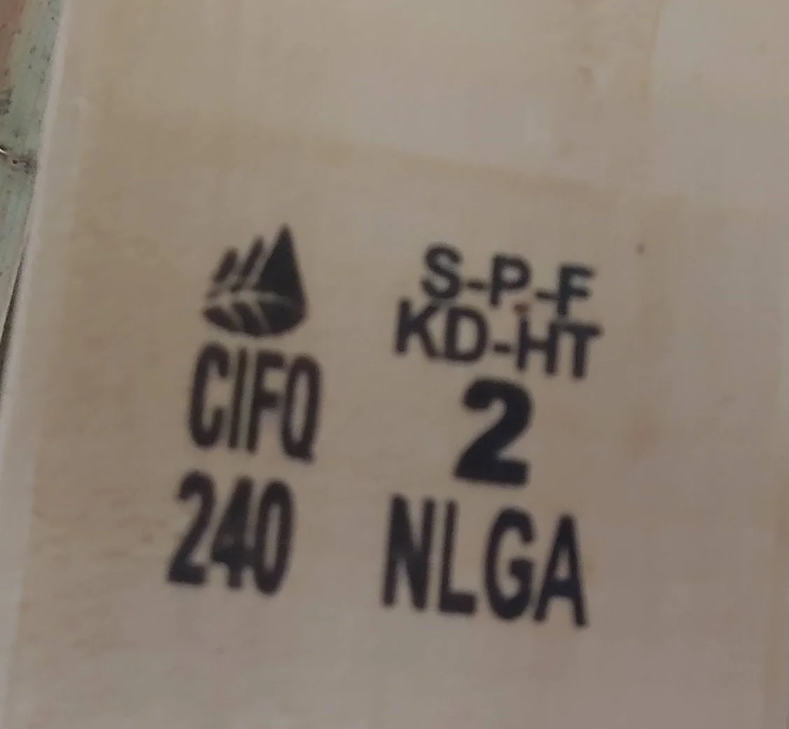 You have to know the hieroglyphics stamped on the side to make an informed choice. The wood stamped NeLMA refers to Northeast Lumber Manufacturers Association, which is trade association and grading agency for softwood lumber; the number 104 refers to the member mill, which is Stratton Lumber in the Rangeley area. The wood stamped CIFQ refers to Council of the Quebec Forest Industires and mill number 240 is Produit forestiers Resolu in Saint-Thomas-Didyme, Quebec. But all you really need to remember is that NeLMA is the trade association for Maine’s larger mills and many smaller ones. Therefore, choose NeLMA to support local sourcing. (For more on stamps, see “On reading lumber stamps” below.